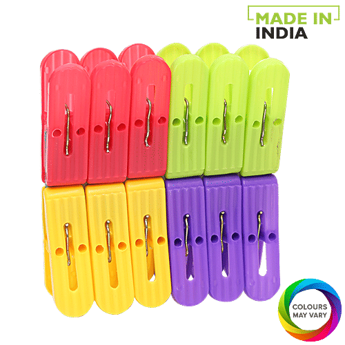 Swastik Gold Premium Plastic Cloth Clips – Assorted Colour, 12 pcs
